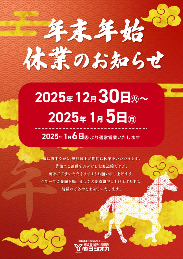 年末年始休業のお知らせ 2025年〜2026年