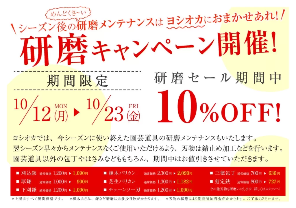 【園芸工具 無料点検フェア】あなたの愛機をメンテナンスいたします