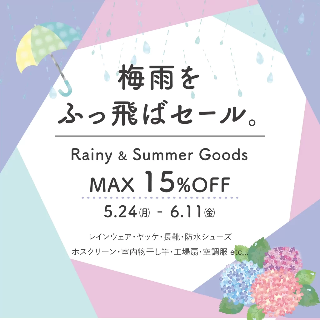ただ今、梅雨をふっ飛ばセール。を開催中 【5/24(月)~6/11(金)】梅雨対策・暑さ対... -