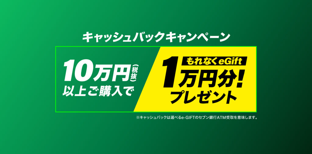 現在開催中の10万円以上のお買い上げで1万円キャッシュバックキャンペーンと合わせて、